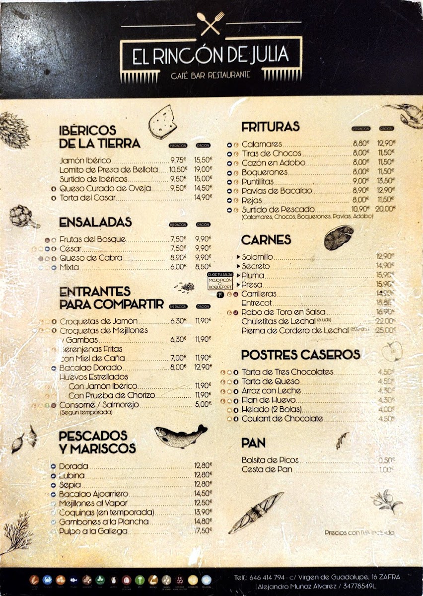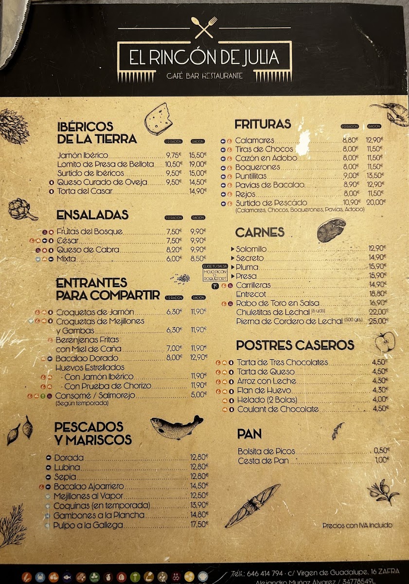 Welcome to Restaurante El Rincón de Julia, a culinary gem nestled in the heart of Zafra, Spain. This charming establishment has garnered rave reviews for its generous portions and flavorful dishes. Clients like Alberto Oliva laud the Iberian pork and ham croquettes, while others sing praises for the Menu del Dia, which offers an exceptional value at only 12 euros.